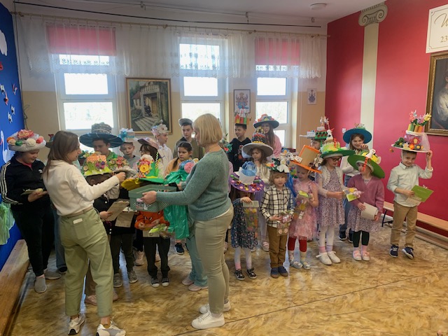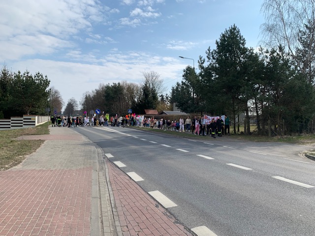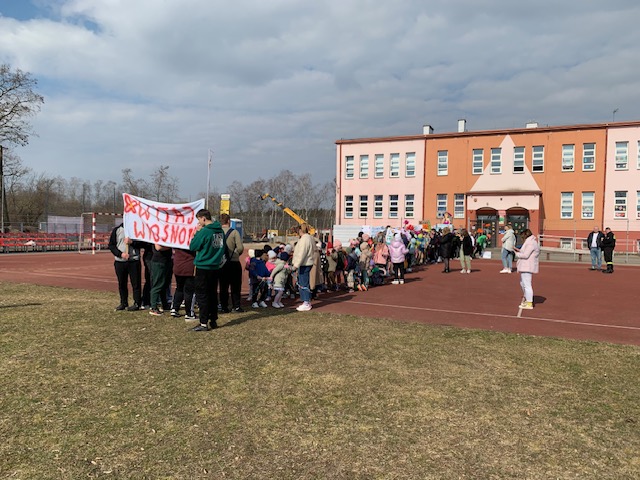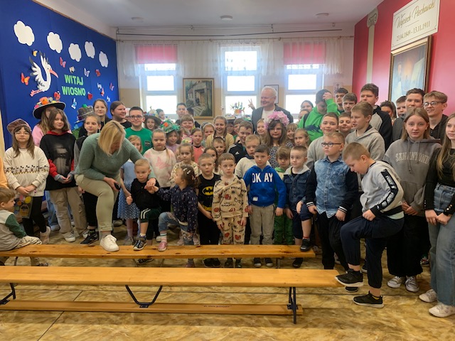 21.03.2025r. Uczniowie wszystkich klas przygotowali się na powitanie wiosny, dzieci z przedszkola i oddziału zerowego również. Już kilka dni wcześniej rozpoczęto zbierania wykonanych z odpadów nakryć głowy. Malowano plakaty i banery, które dokończono właśnie w piątek. Uczniowie klasy 7 i 8 poprowadzili lekcje z młodszymi od siebie. Odbył się pokaz nakryć głowy, w którym wzięła udział liczna grupa uczestników. Prawie wszyscy pamiętali o założeniu dwóch odmiennych, kolorowych skarpet jako znak solidarności z osobami z zespołem Downa. Po przygotowaniach, w asyście strażaków z OSP Piegłowo, ruszyliśmy wszyscy barwnym korowodem z banerami przez Nosarzewo Borowe, śpiewając wiosenne piosenki i wznosząc okrzyki powitalne na cześć wiosny. Niektórzy uczniowie postanowili sprawdzić, czy rzeczywiście wiosna nadeszła i maszerowali w bluzkach na krótki rękaw – a odpowiedż od nich poznamy w poniedziałek (jeśli będą zdrowi…).