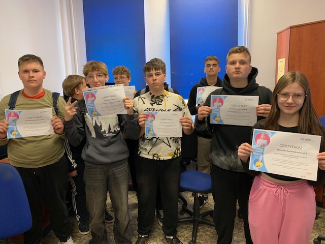 28.03.2025r. Zakończył się kurs “Szkoła międzypokoleniowa”. 6 zajęć z seniorami przeprowadziło 9 uczniów z klasy 8. Ósmoklasiści zachowywali się wzorowo, wykazując się cierpliwością i życzliwością, byli bardzo chwaleni przez seniorów. Seniorzy zaś zdobyli wiedzę i umiejętności dotyczące bezpiecznego korzystania z Internetu i cyfrowych technologii. Liderem zajęć był pan Mariusz Chlebowski. Dziękujemy seniorom i młodzieży za współpracę!