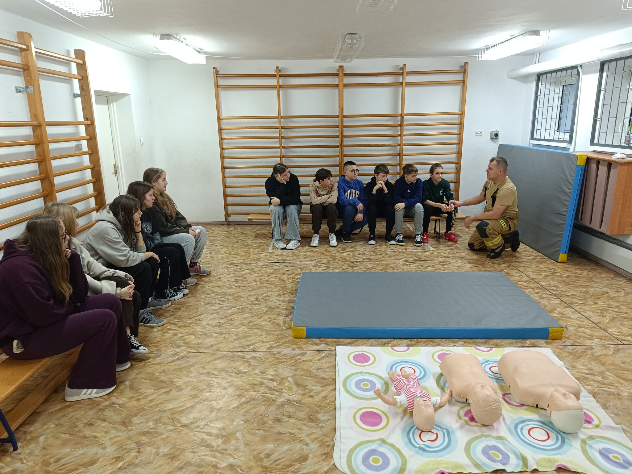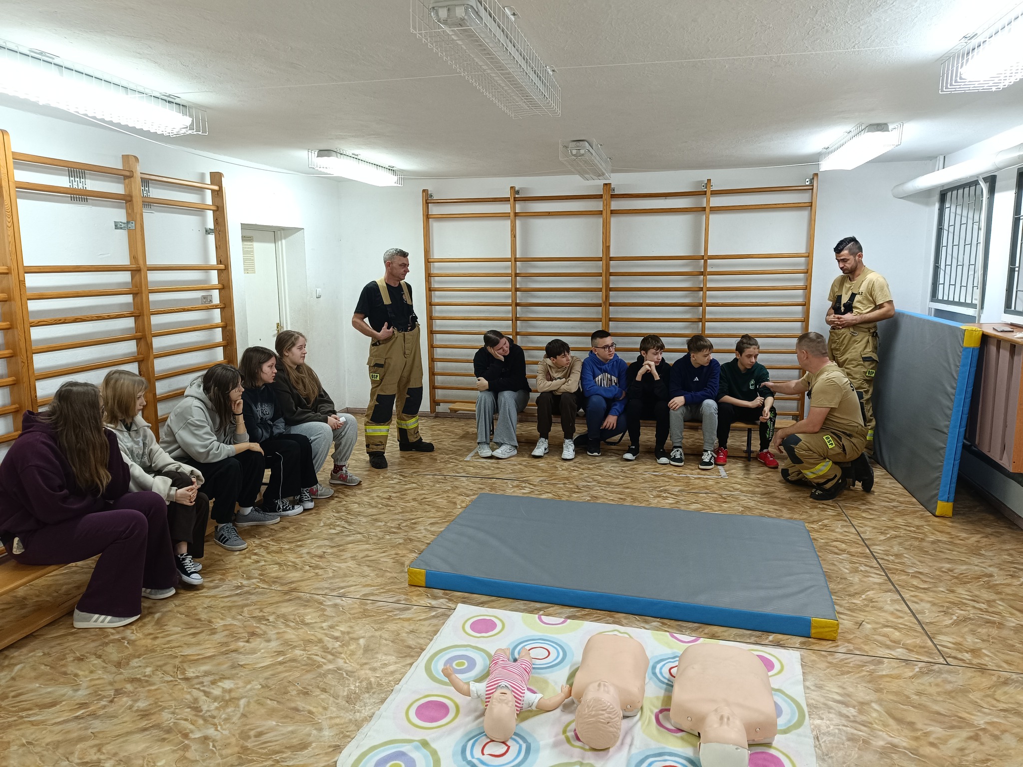 Uczniowie klas VII i VIII uczestniczyli w zajęciach z zasad udzielania pierwszej pomocy przedmedycznej, które w naszej szkole przeprowadzili druhowie OSP Piegłowo panowie Sławomir Wolszczak, Sebastian Rudnicki oraz Łukasz Kabziński.