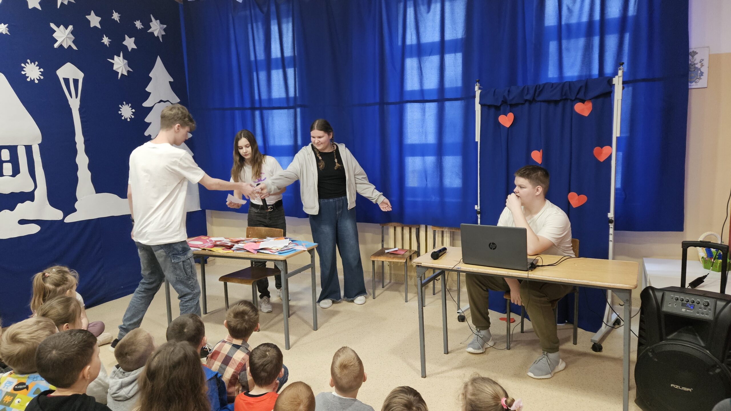 6 marca dzieci z oddziałów przedszkolnych oraz uczniowie klas 1–4 obejrzeli spektakl profilaktyczny pt. „Tajemnicza skrzynia”.